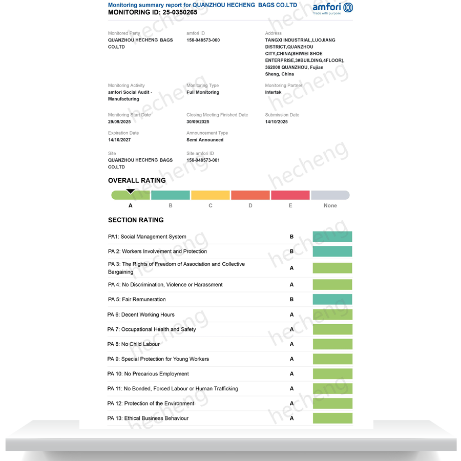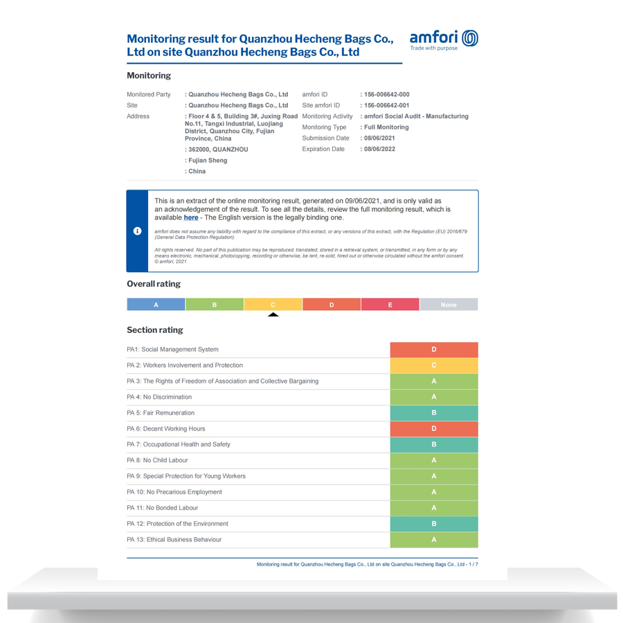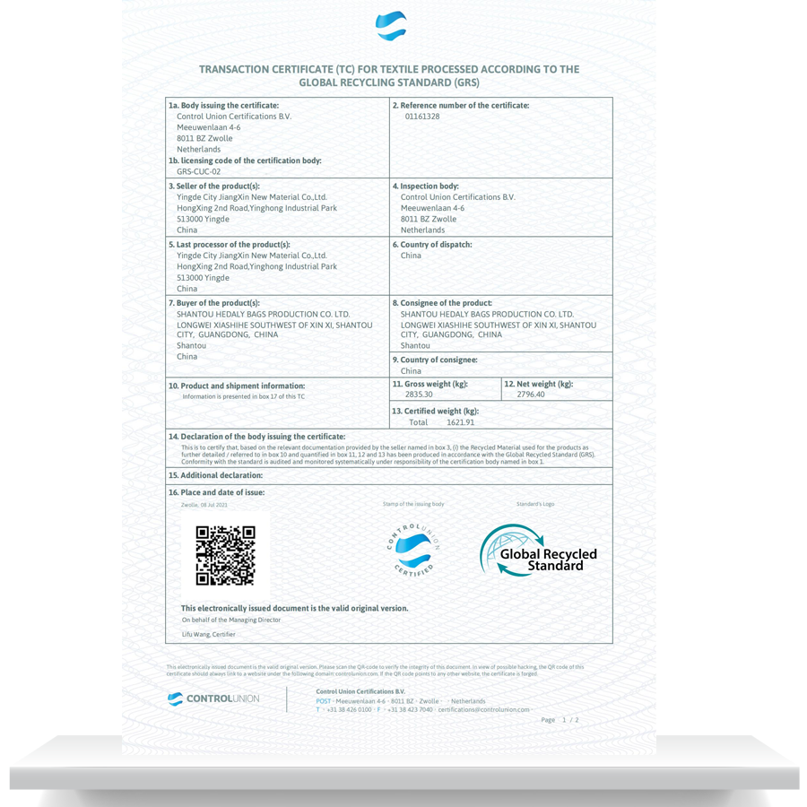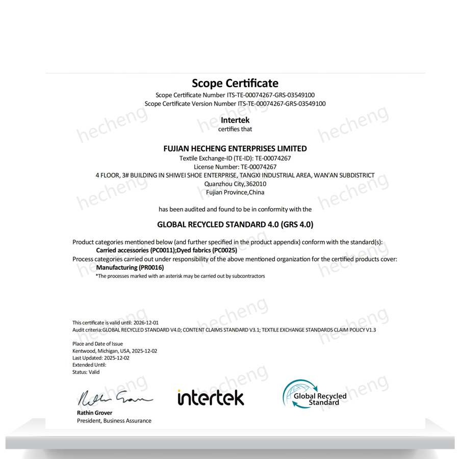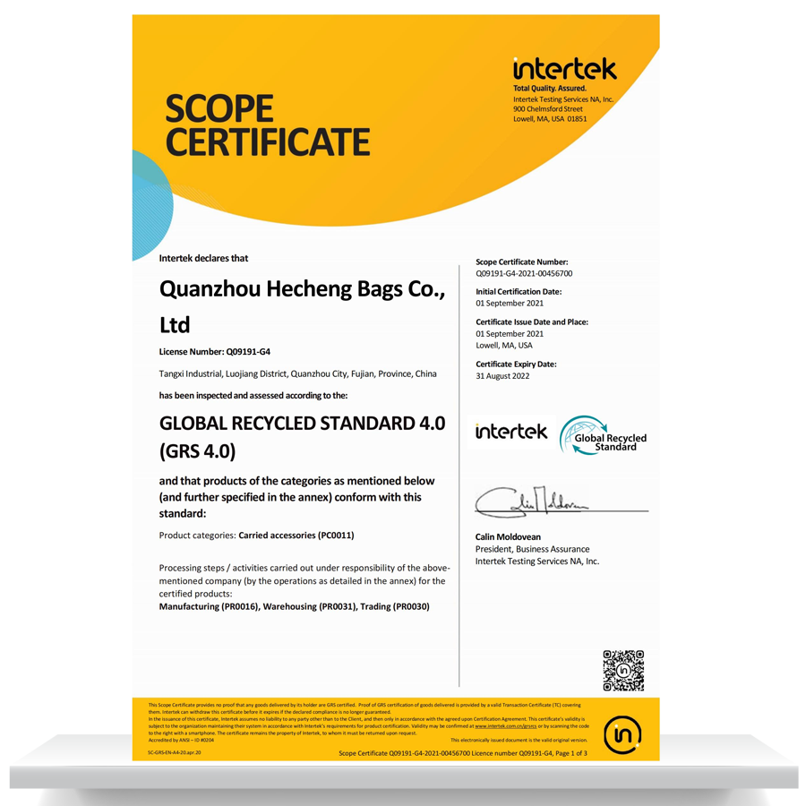 GRS-Zertifikat - Quanzhou Hecheng Bags Co., Ltd.
