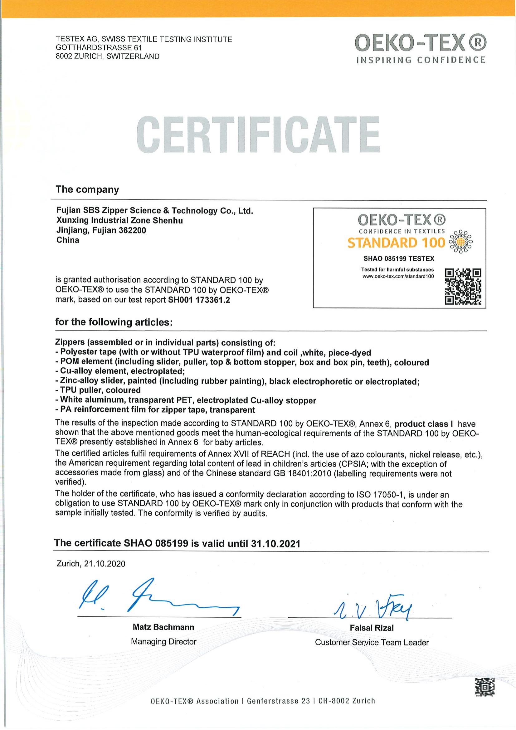 OEKO-TEX 100-SBS Reißverschluss-2021